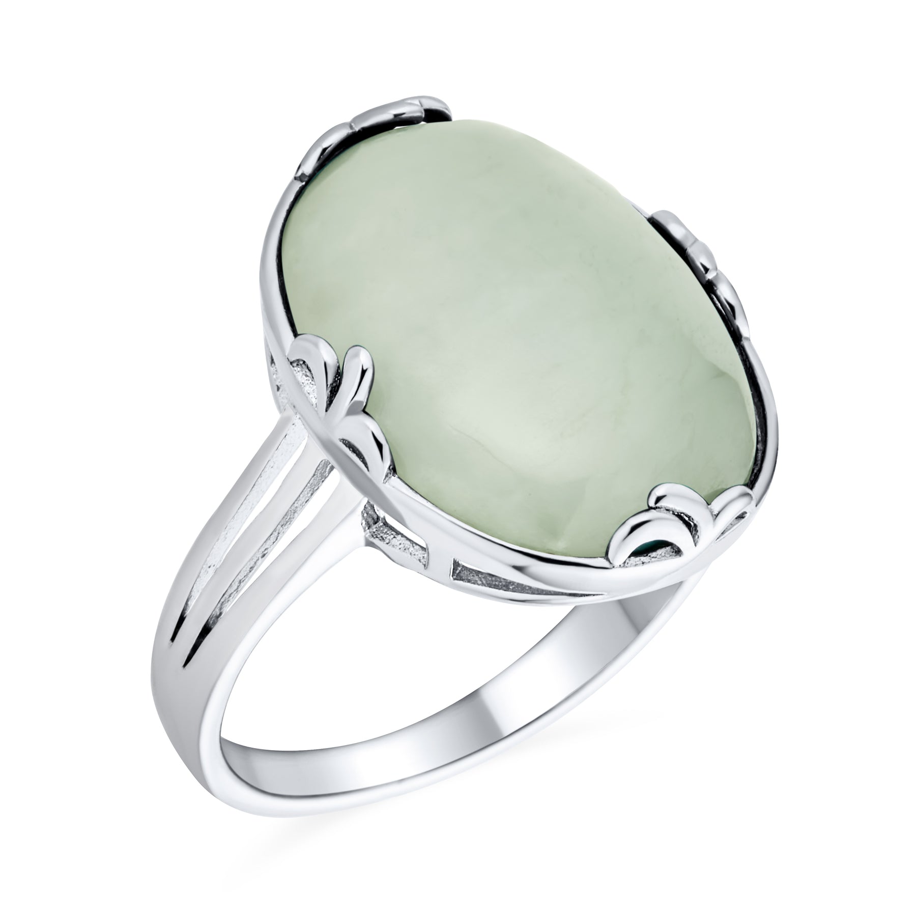 - Add a touch of timeless elegance with this Western Boho vintage-inspired full finger statement ring. Featuring a light green jade cabochon set in a decadent Baroque silver Fleur-de-Lis filigree design, this piece is crafted from .925 sterling silver with an oxidized finish for antique charm. Jade and silver rings complement any outfit; this Jade ring is no exception. The four-prong setting encircles the gemstone for a look that is both luxurious and casual—an ideal gift for any March birthday.
